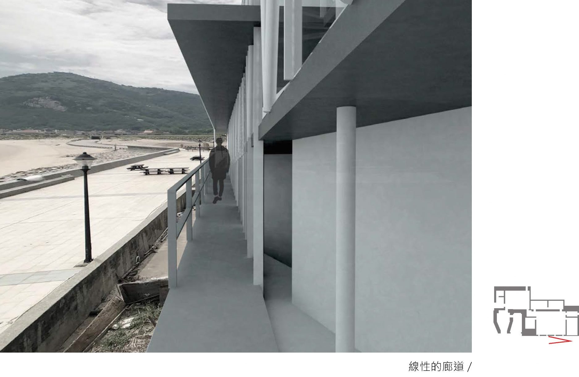 – 筆直線性的半戶外廊道,正巧面對北竿機場,可見飛機的起飛、降落